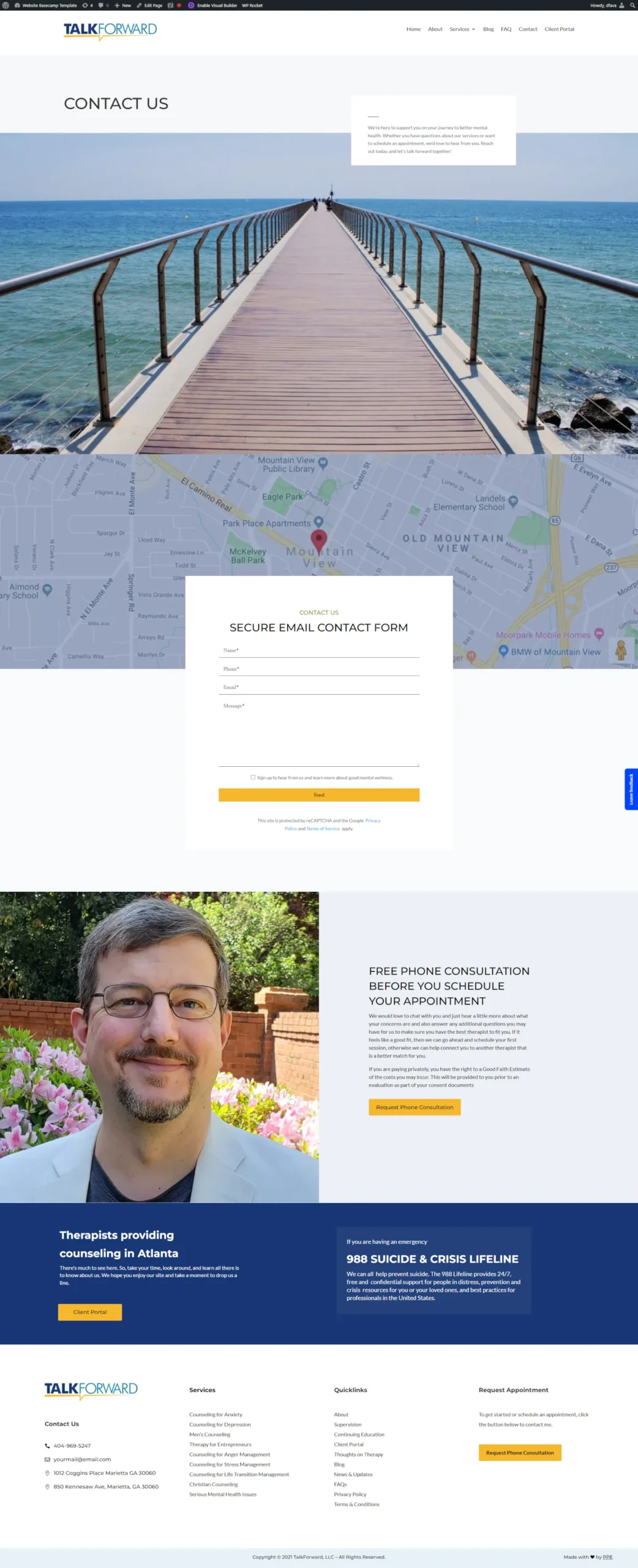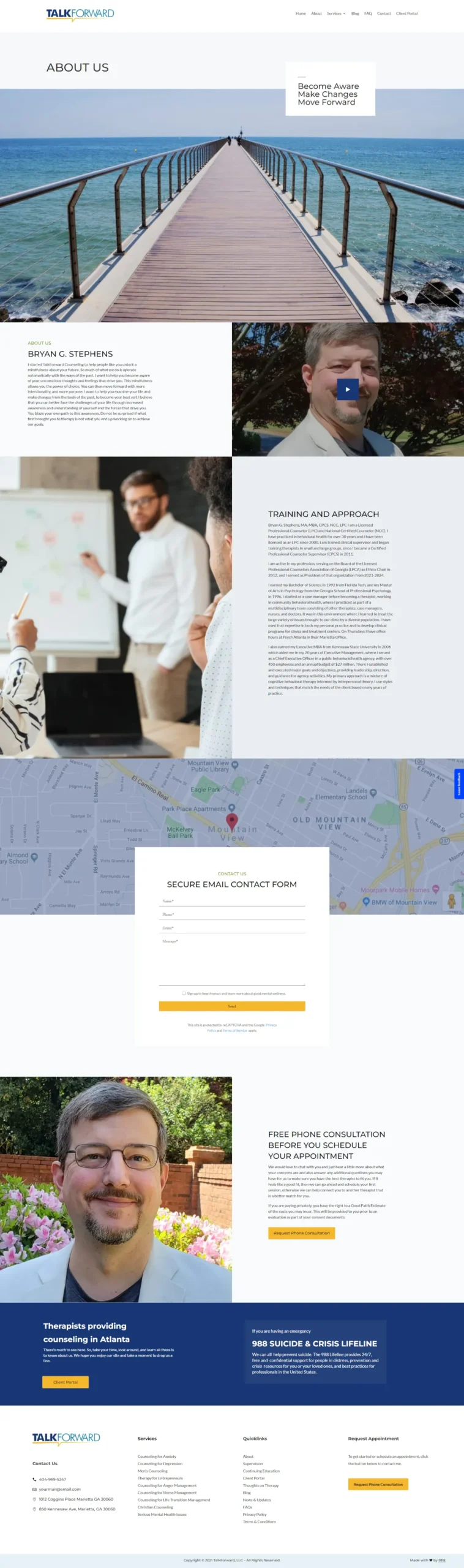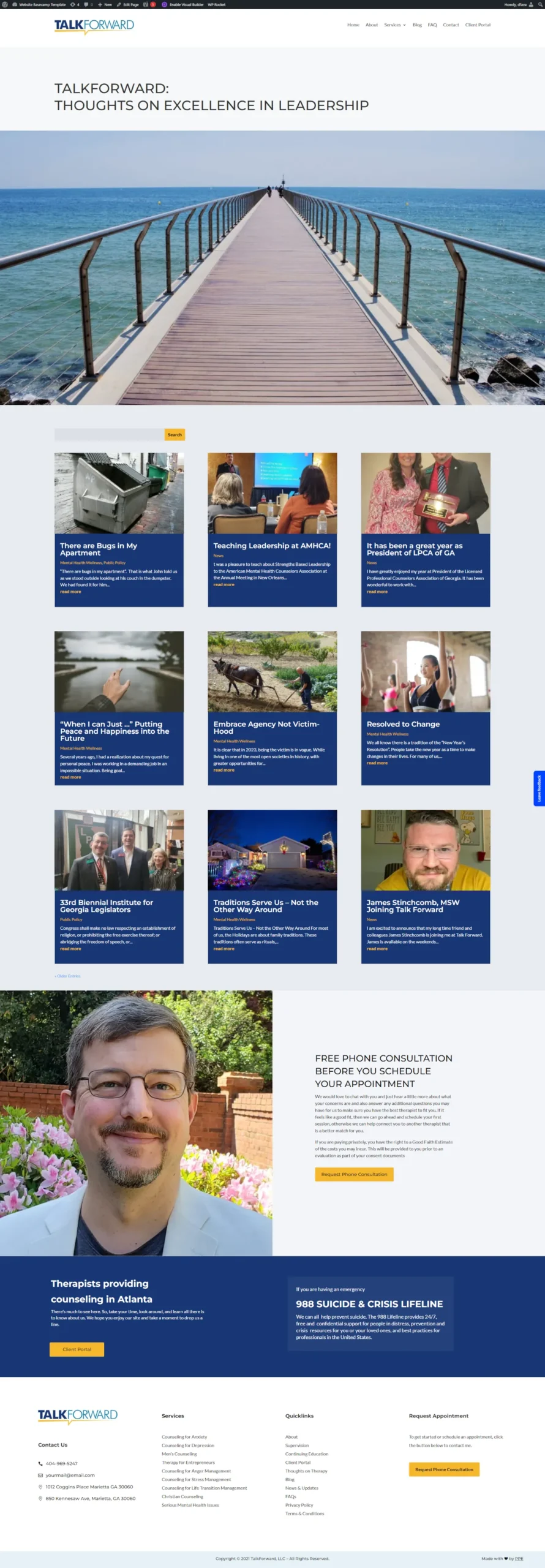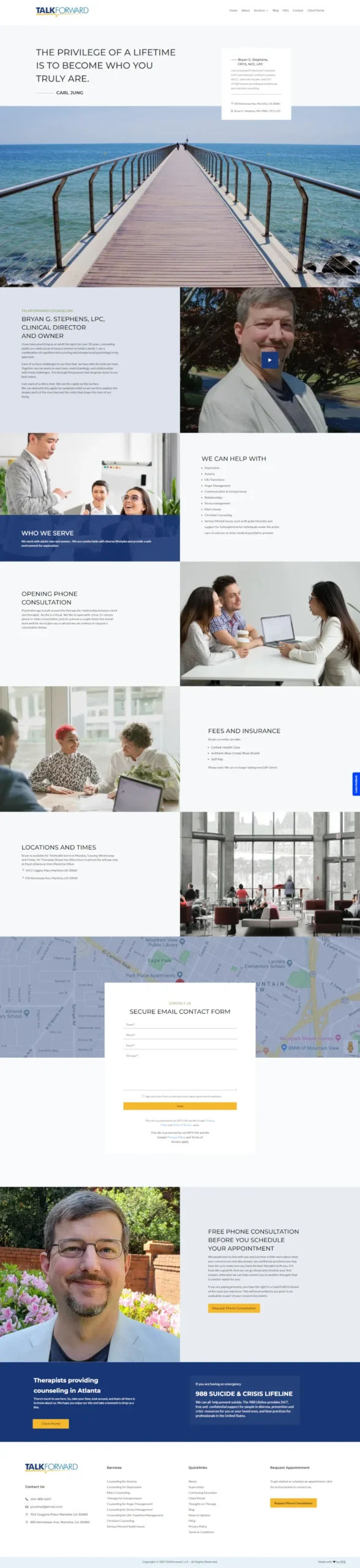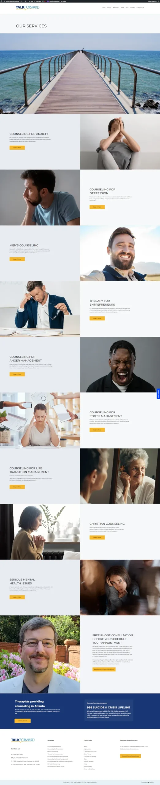 We partnered with TalkForward Counseling (Marietta, GA) to launch their specialized anxiety and depression care platform. Powered by WordPress and Divi, the site features a polished, symmetrical design. We overcame complex responsive layout challenges using advanced CSS breakpoints to ensure perfect alignment between images and content across every screen size.